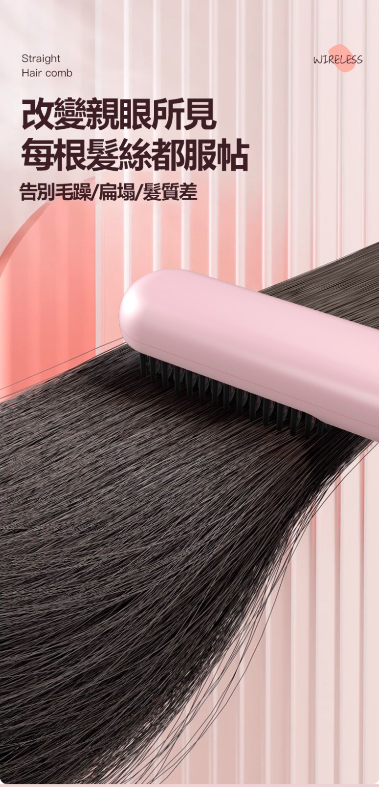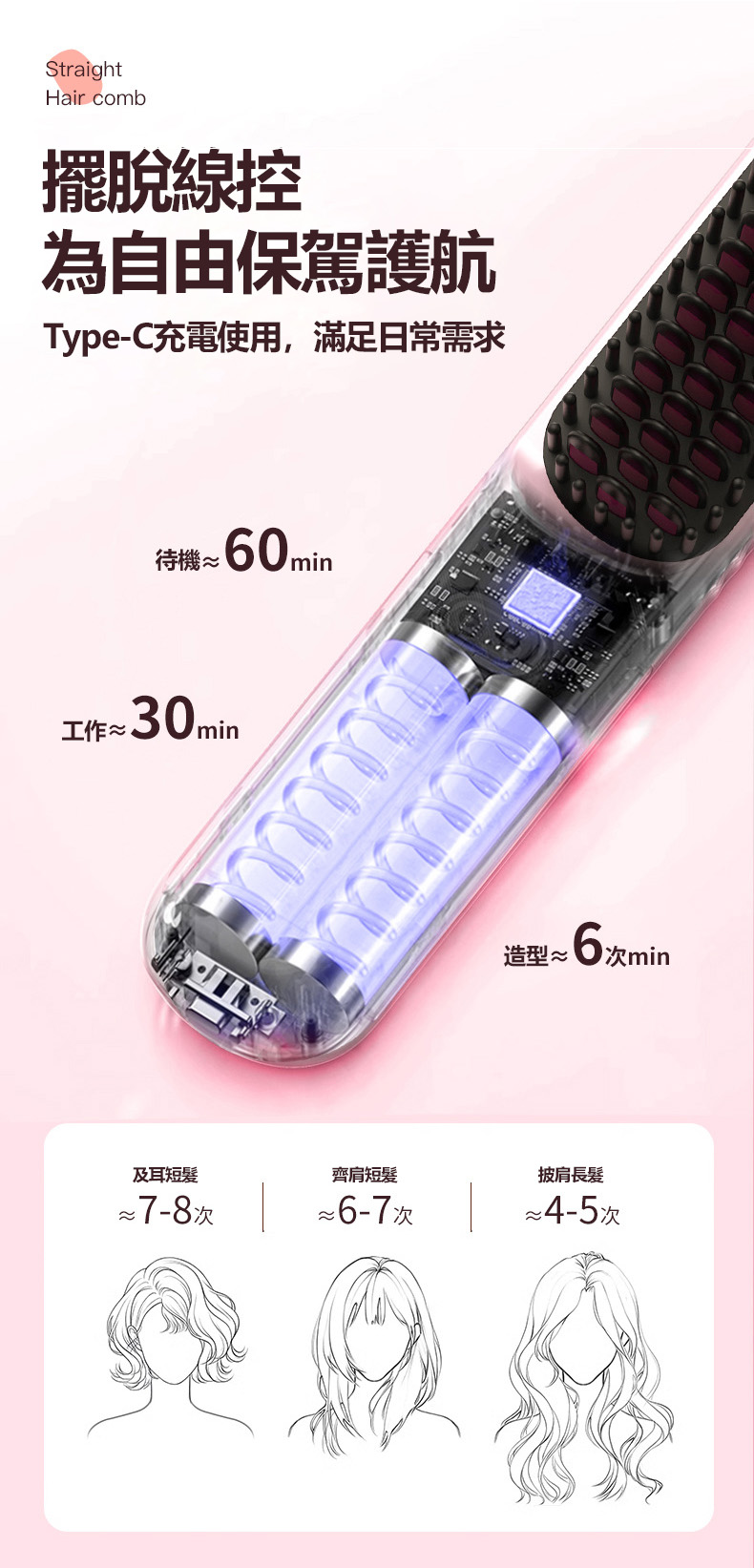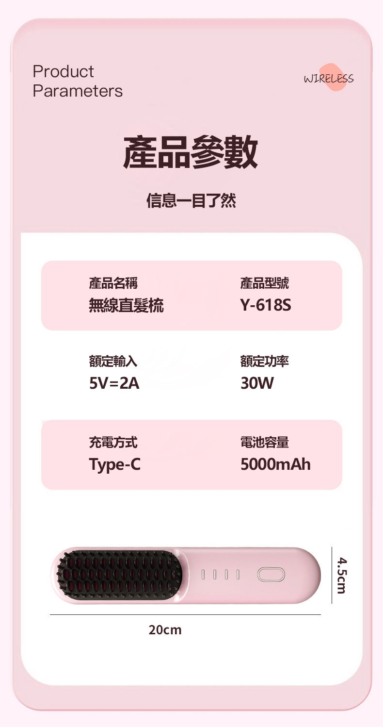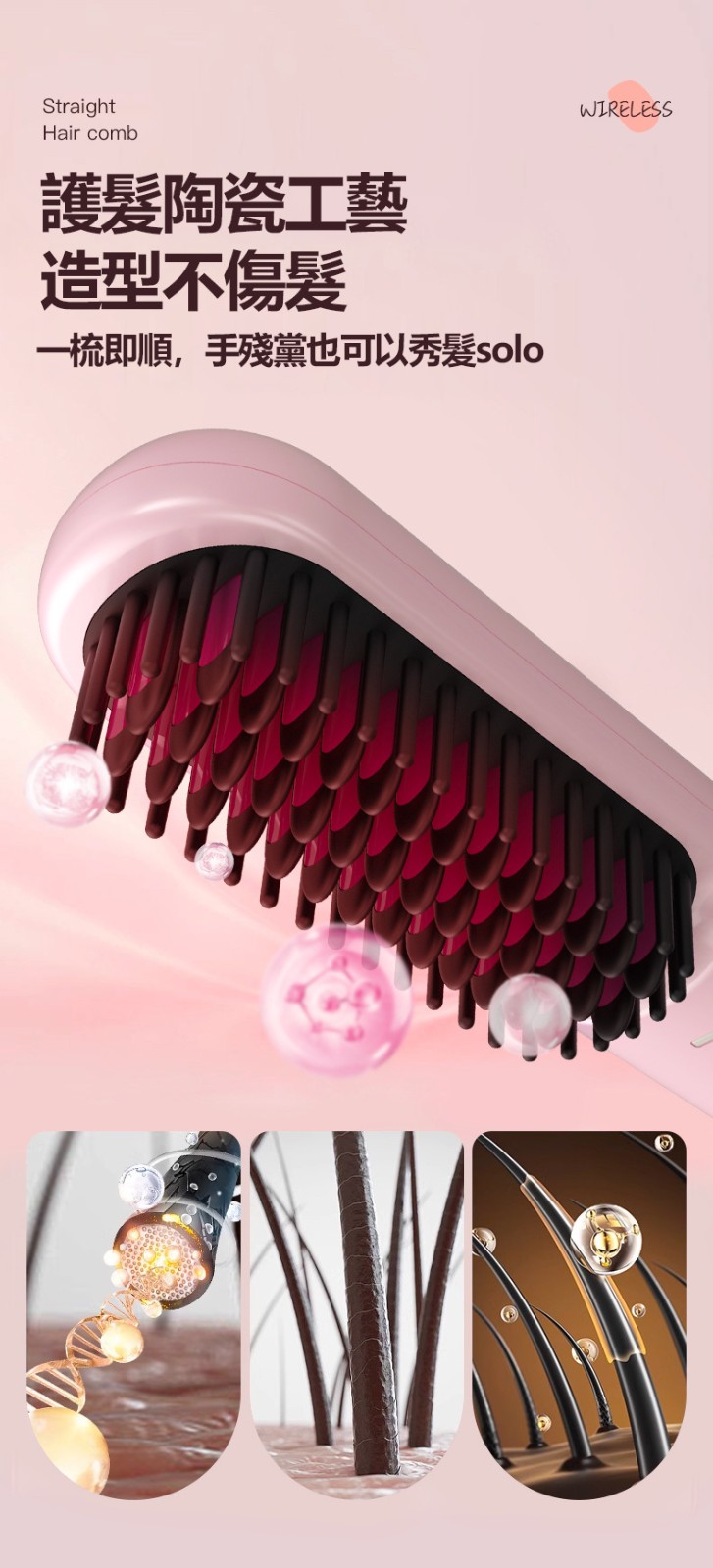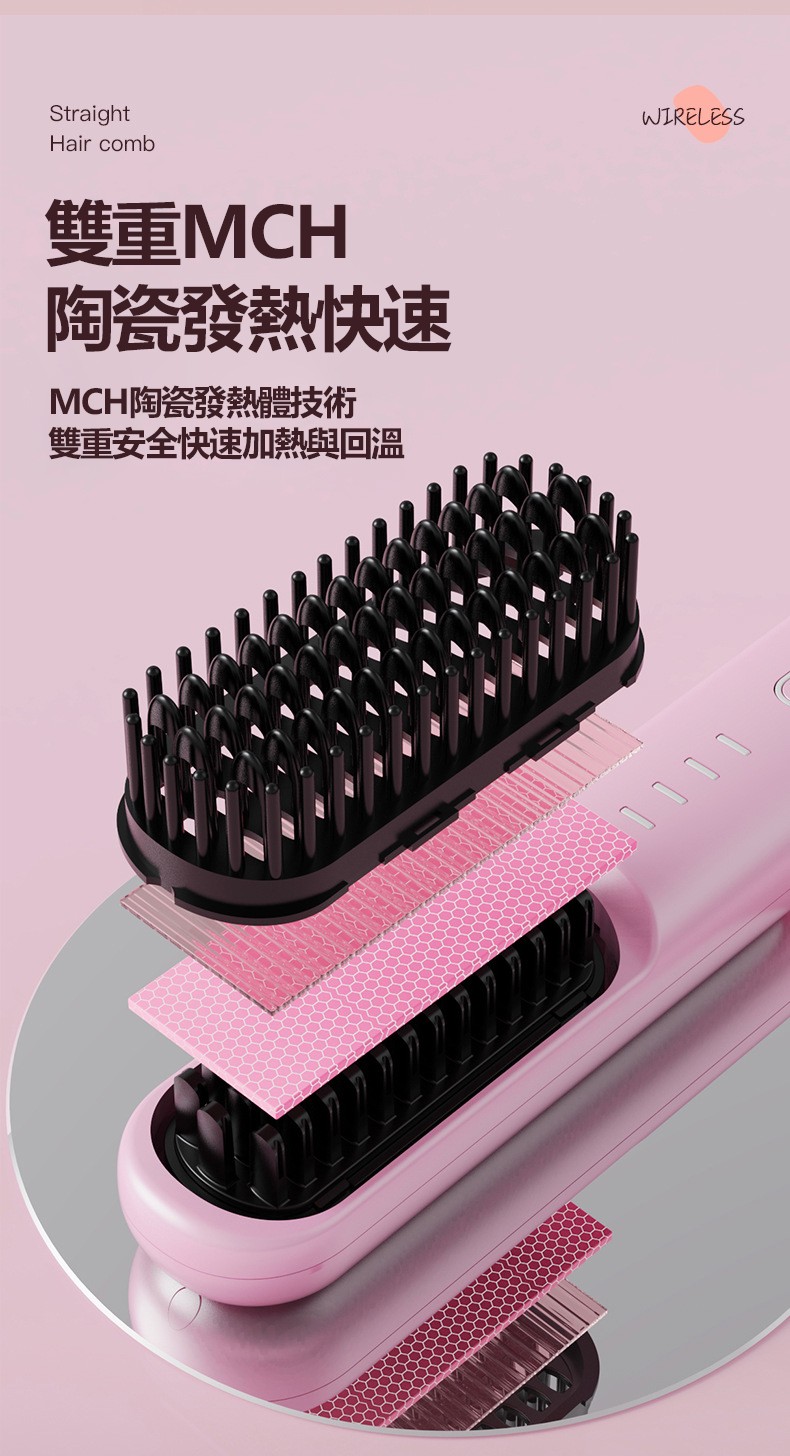 而且這款直髮梳是無線充電,充電2小時可用30分鐘