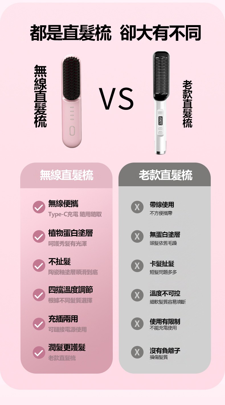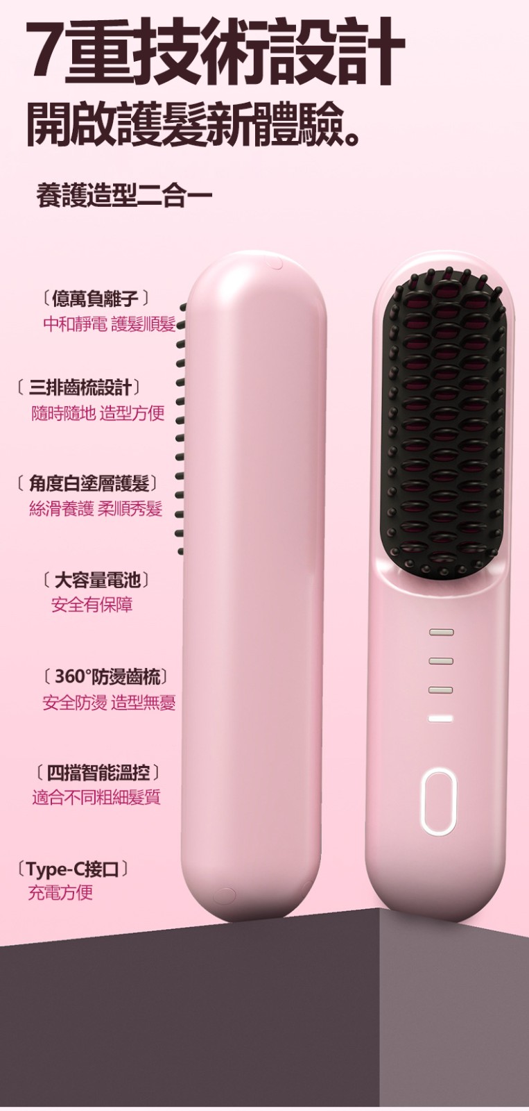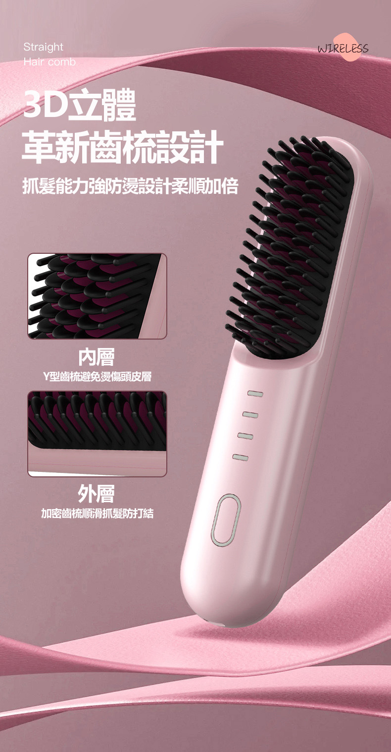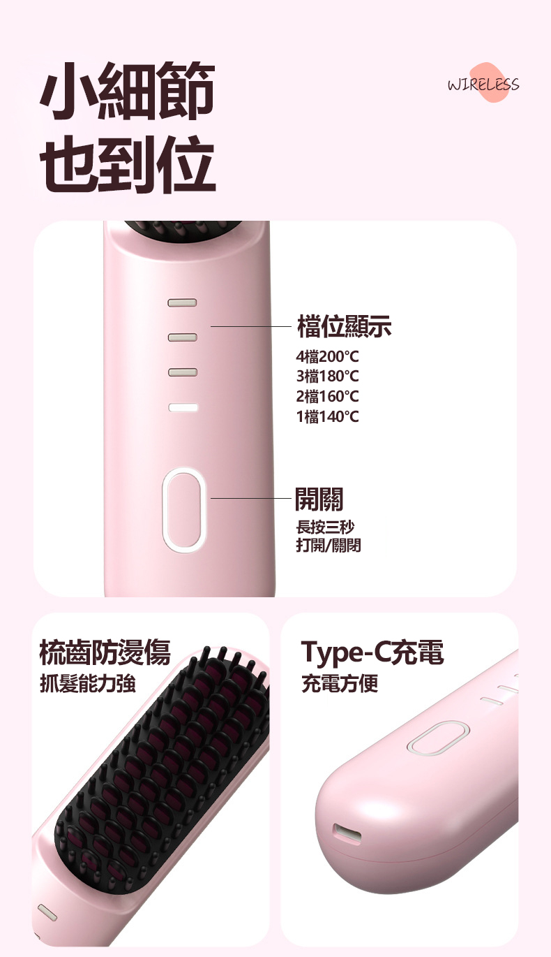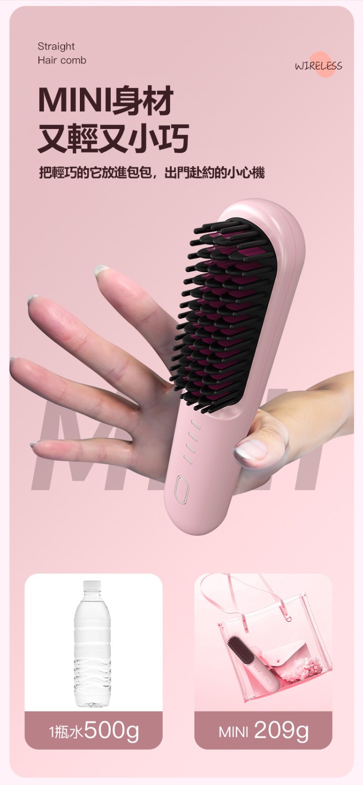 而且這款直髮梳是無線充電,充電2小時可用30分鐘