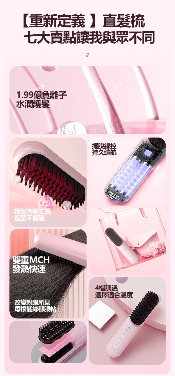 這款直髮梳最讓我心水的一點是自然高濃度負離子,完全不傷頭髮