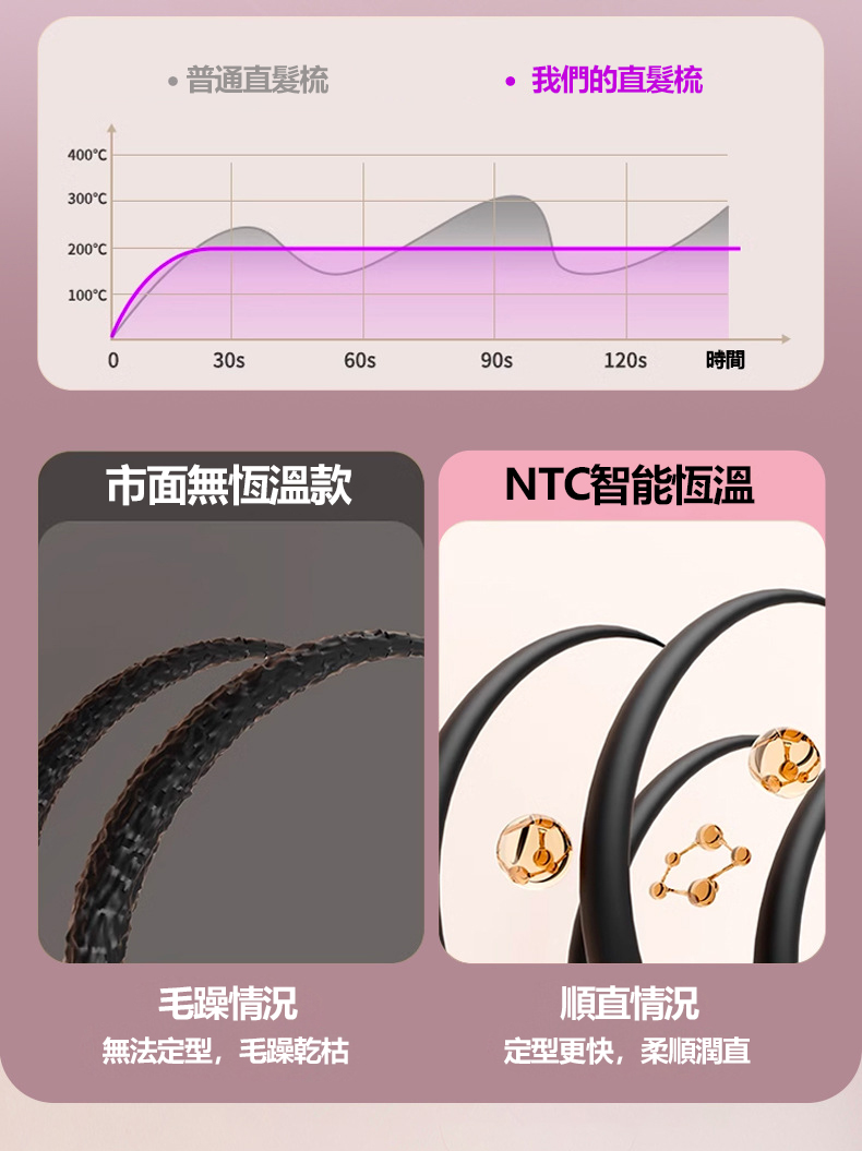 更厲害的是這款直髮梳內含奈米級別的水潤負離子